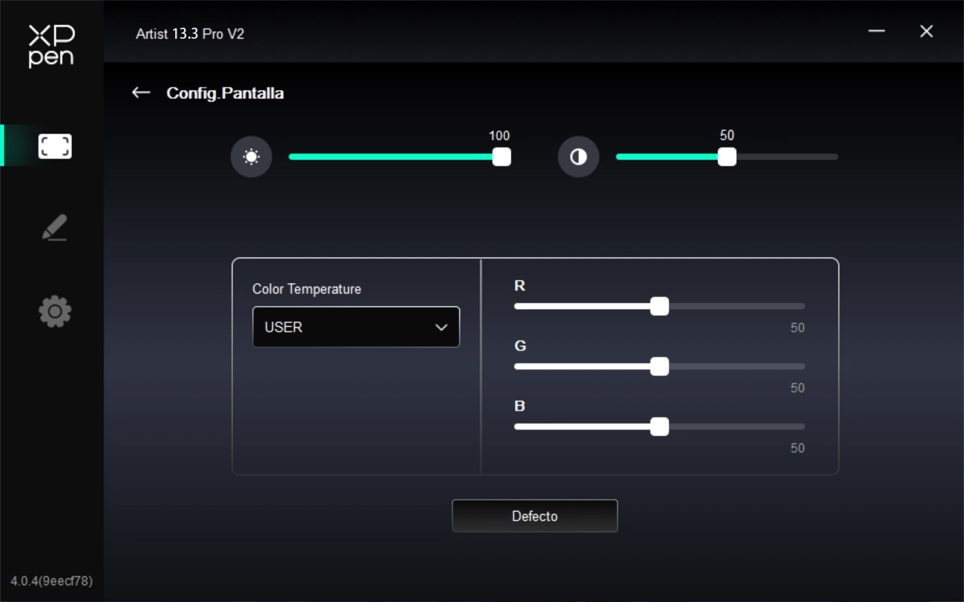 El controlador ofrece cinco modos: 5000K, 6500K (predeterminado), 7500K, 9300K, USUARIO;