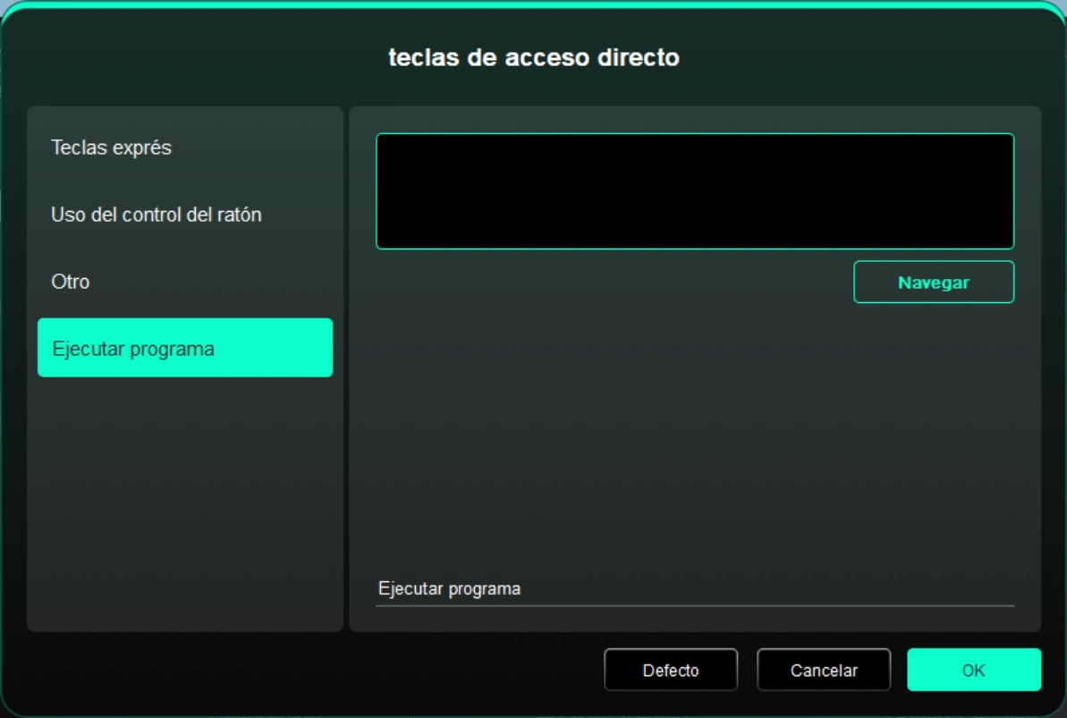 Establezca la combinación de teclas del ratón y el teclado. Con "Shift" y "Clic Izquierdo" seleccionadas, las acciones de acceso directo se pueden habilitar en la aplicación que admite tales combinaciones de teclas.