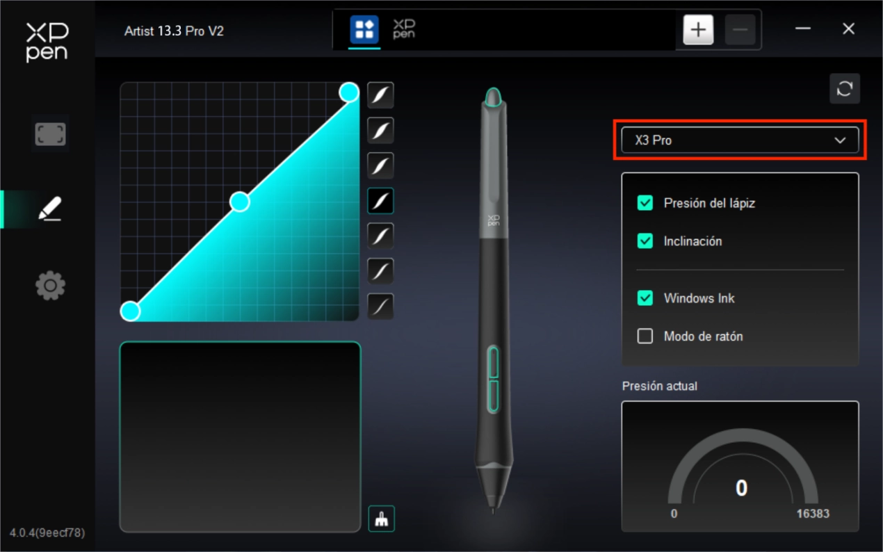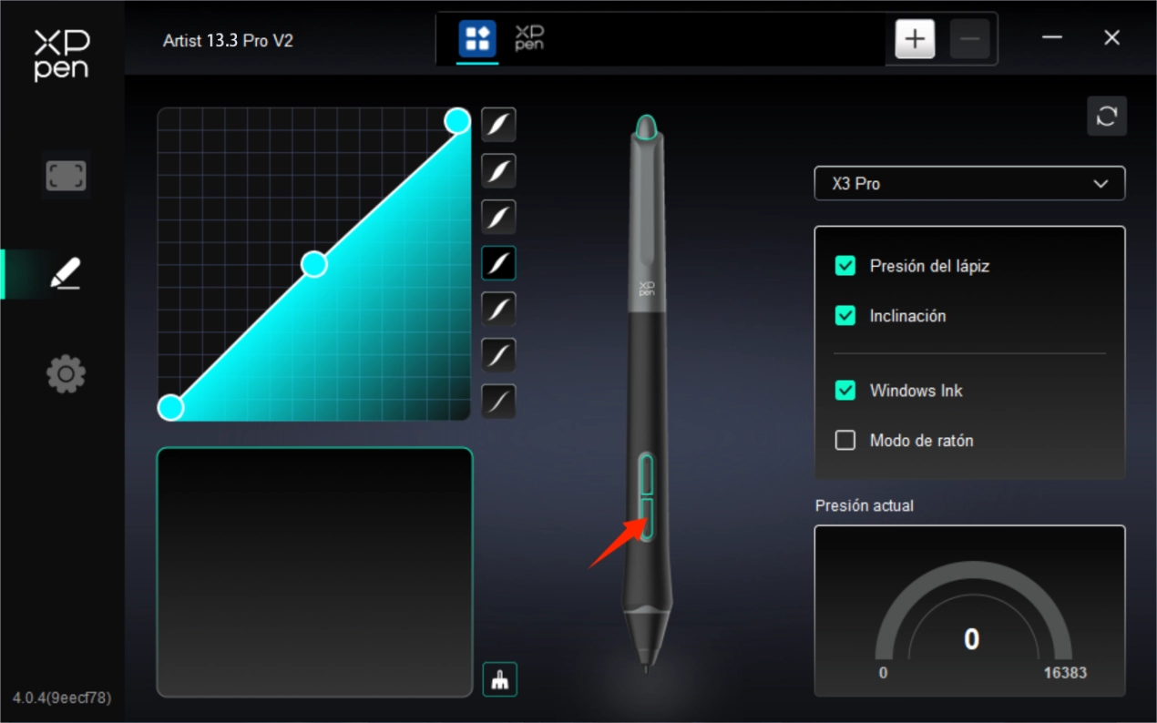 6) Si la presión del lápiz es normal en el controlador (Windows: asegúrese de que Windows Ink esté habilitado en los ajustes del lápiz del controlador), ejecute el software de dibujo y vuelva a probarlo.