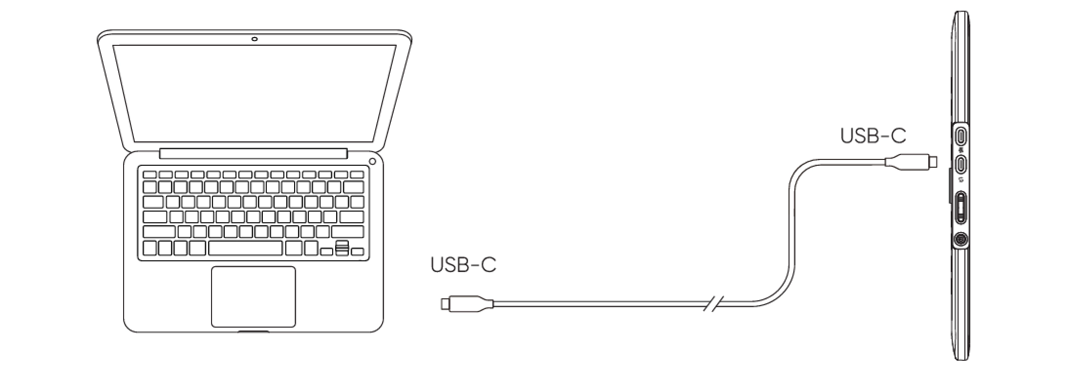 1) Conecte la pantalla gráfica a su dispositivo directamente con el cable USB-C.
